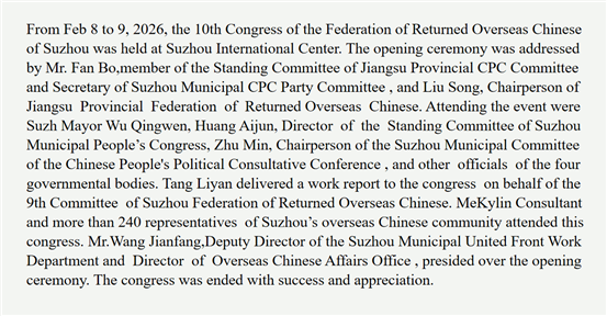 MeKylin Consultant Attended Suzhou 10th Congress of Federation of Returned Overseas Chinese